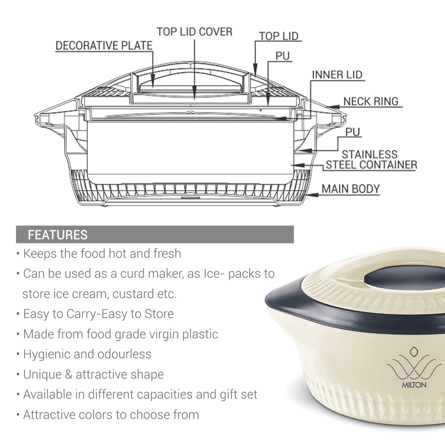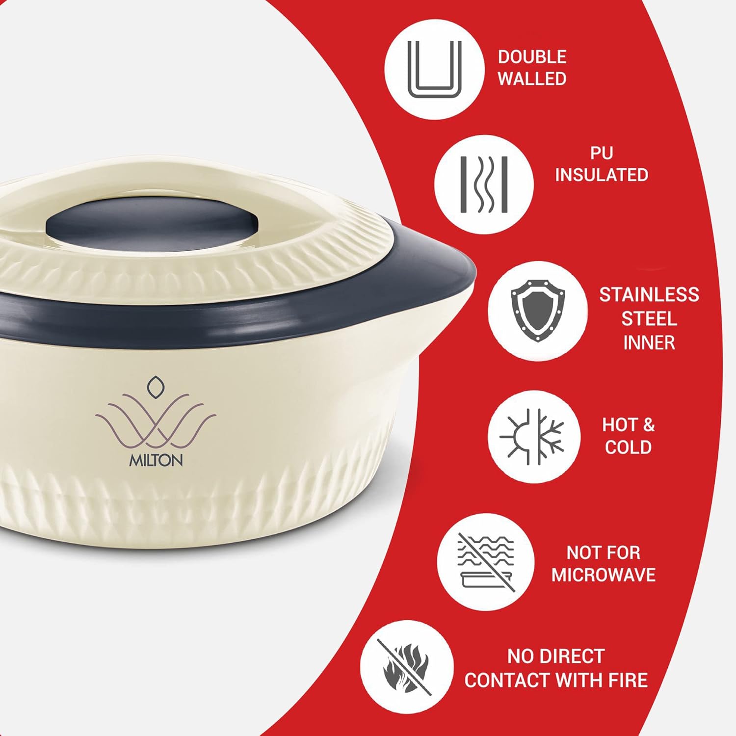 Milton Royal 1000 Insulated Inner Stainless Steel Casserole, 830 ml, Cream | BPA Free | Food Grade | Easy to Carry | Easy to Store | Ideal For Chapatti | Roti | Curd Maker