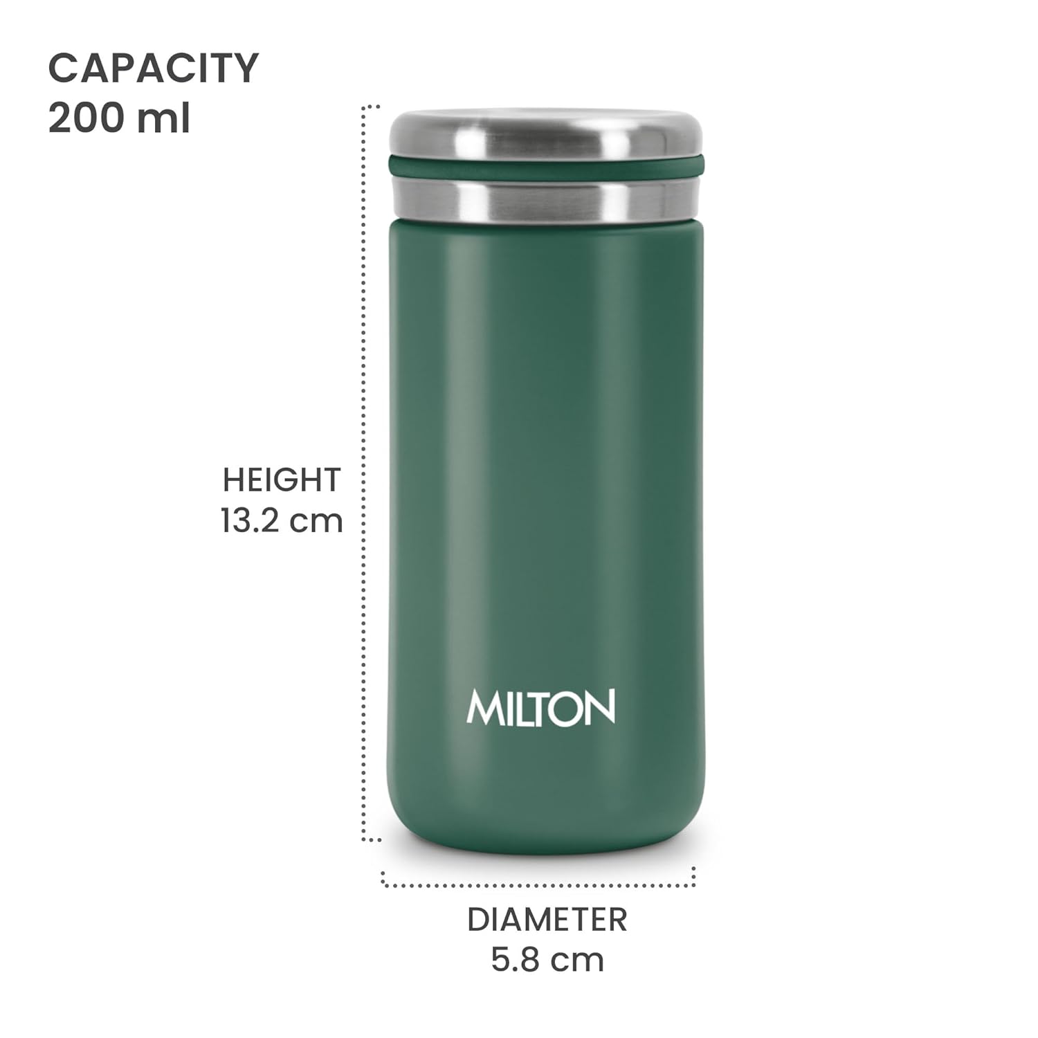 Milton Shiny 200 Thermosteel Water Bottle 200 ml, 24 Hr Hot and Cold I Leak Proof Lid, ISI Certified I Vacuum Insulated I for Office, Gym, School I Green