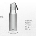 MILTON Super 1000 Stainless Steel Water Bottle 1000ml | Single Wall | Leak-Proof Lid, Rust-Free | ISI Certified | BPA-Free | For School, Office, Gym, Travel | Silver