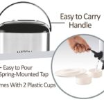 - Its spring-mounted tap allows you to pour beverages with ease