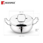 Bergner Argent Saiba Triply Stainless Steel Multi Purpose Casserole/Stainless Steel Casserole with Curved Shape Lid