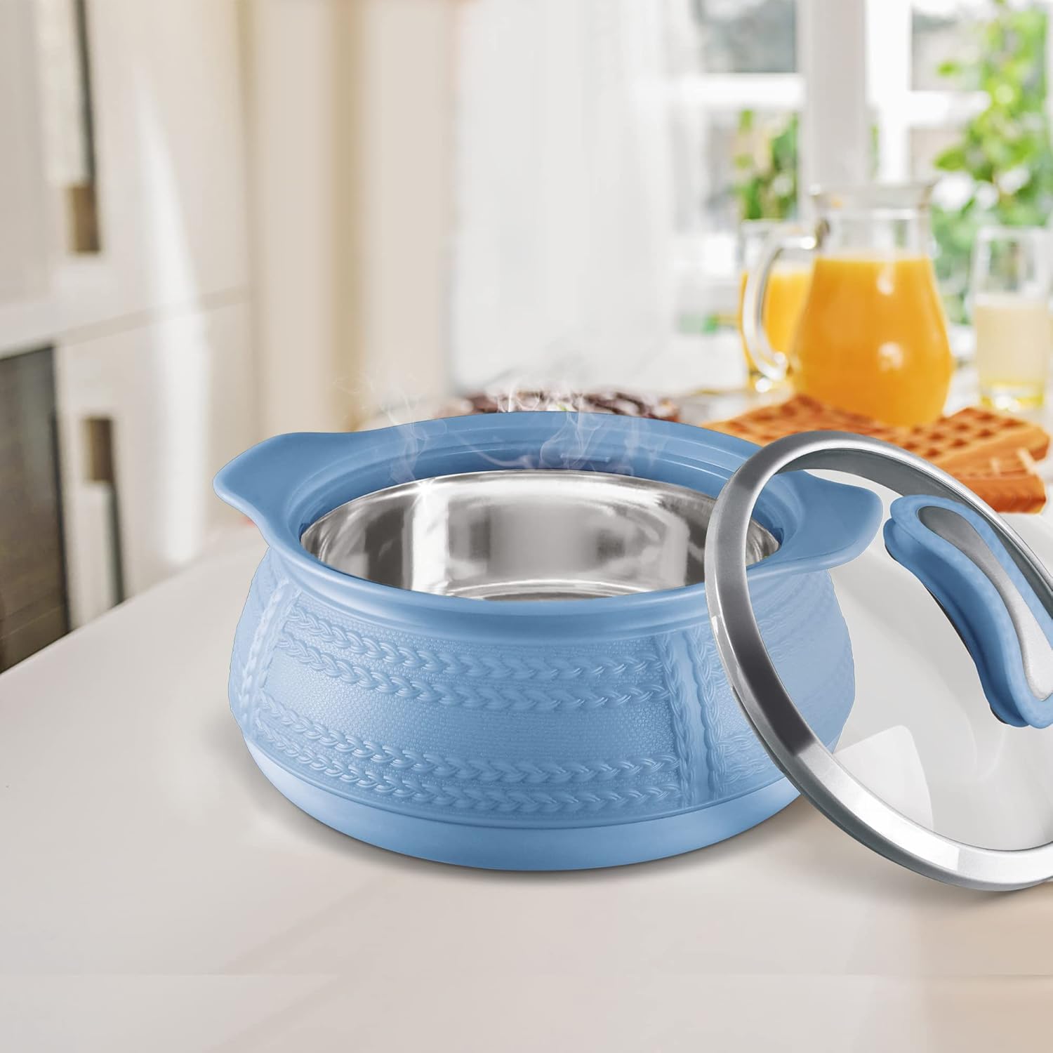 - Colour: Blue; Material: Inner Stainless Steel; Package Contents: 1 – Piece Weave Casserole (1.32 Litres); Product Dimension in cms (L x W x H) (25.7 x 24.8 x 14.5); For any query/assistance please contact us.