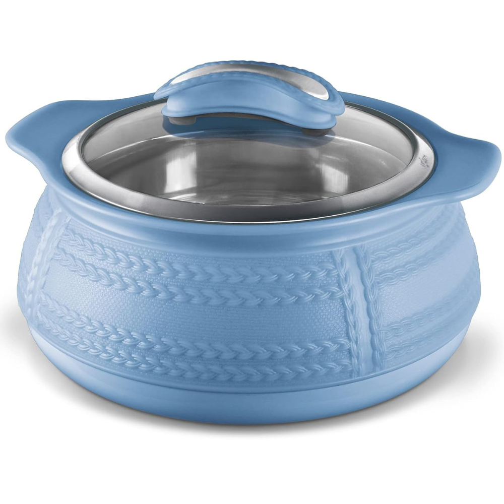 MILTON Weave 1500 Insulated Inner Stainless Steel Casserole with Glass Lid, 1.32 litres, Blue | BPA Free | Food Grade | Easy to Carry | Easy to Store | Ideal for Chapatti | Roti | Curd Maker