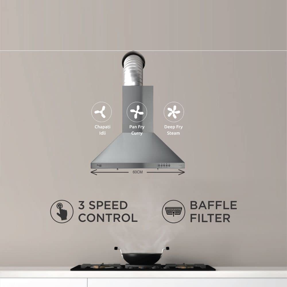 Preethi Alya KH 203 with free installation, 60cm, 3 Speed Chimney with 750 m3/hr Suction, 65 W, 2x Baffle Filter, 10 Yr Motor Warranty