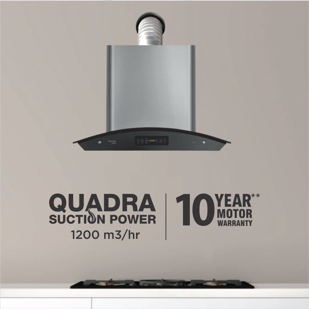 Preethi Alya KH 206 with free installation, 60cm, 3 Speed Chimney with 1200 m3/hr Suction, 180 W, 2x Baffle Filter, 10 Yr Motor Warranty