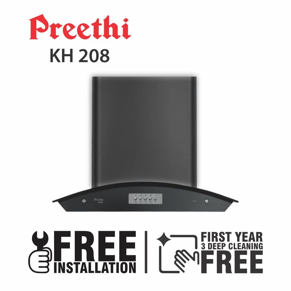 Preethi Alya KH 208 with free installation, 60cm, 3 Speed Chimney with 1200 m3/hr Suction, 180 W, 2x Baffle Filter, 10 Yr Motor Warranty