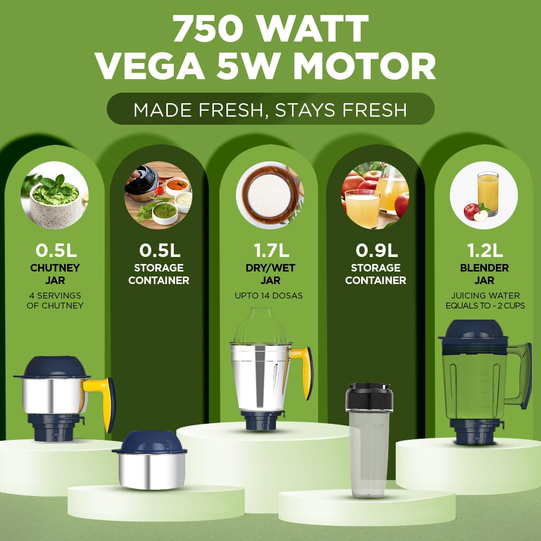 - Indias 1st Mixer Grinder with Food Sense technologty that allows one to ‘Grind’ and subsequently ‘Store’in the absence of air