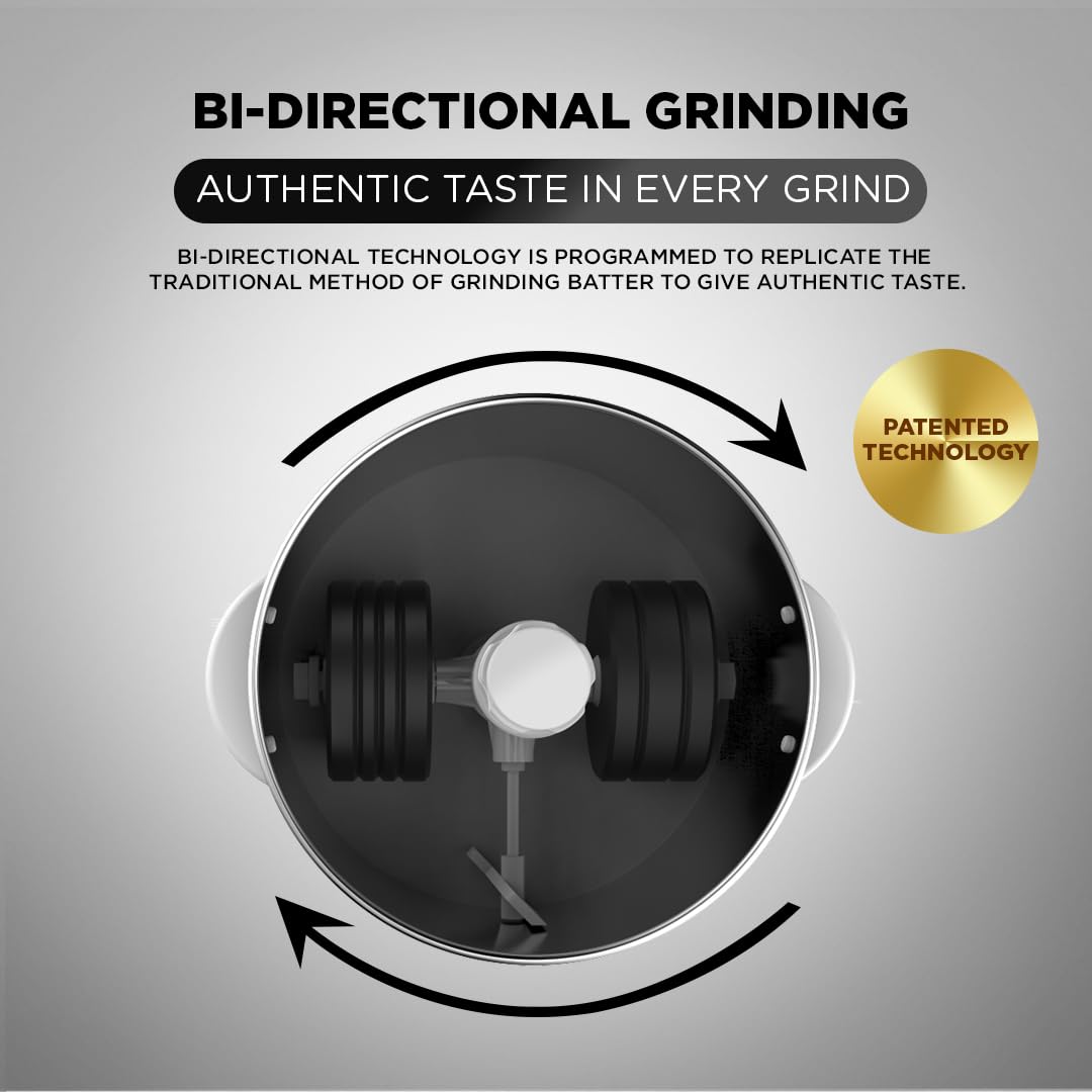 Patented two way grinding technology 1st time in India. Grinds clockwise and anti-clockwise just like our traditional stone grinder. that allows both clockwise and anti-clockwise grinding. Making Traditional authentic taste with a blend of technology