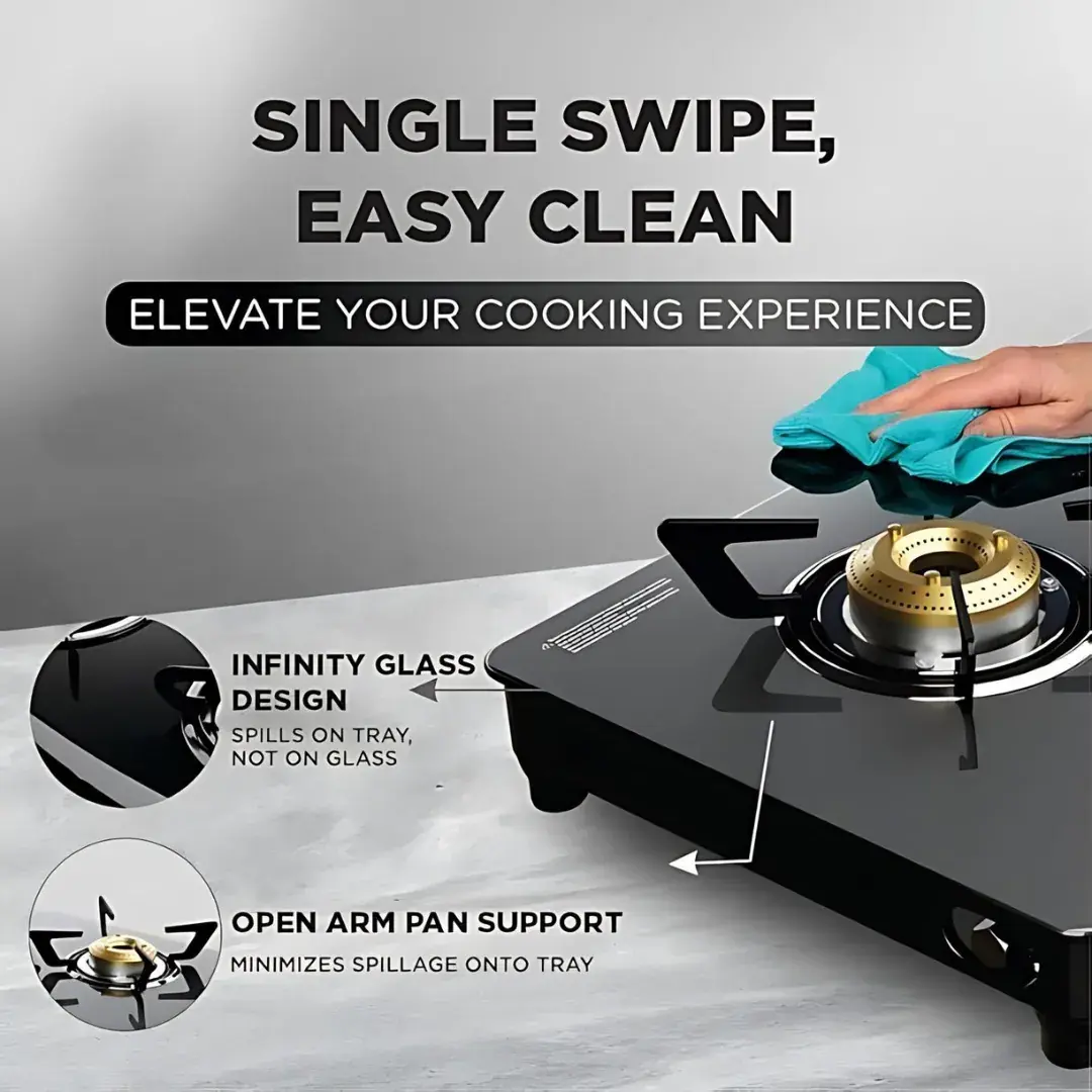 - Infinity Glass Design: The stove is designed with an infinity glass top, enhancing its aesthetic appeal while providing durability.