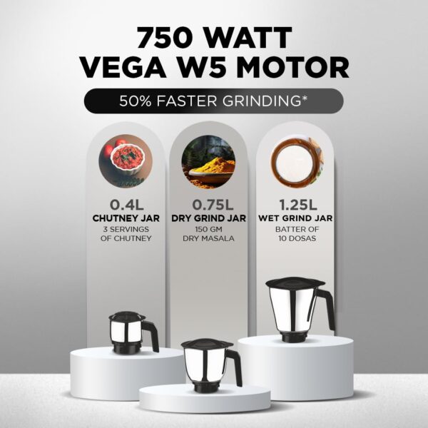 *Powerful VEGA W5 750W motor helps to grind tough ingredients with ease