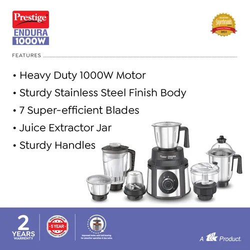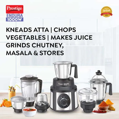 Prestige Endura 1000 W Mixer Grinder, 6 Jars (Black, Silver)