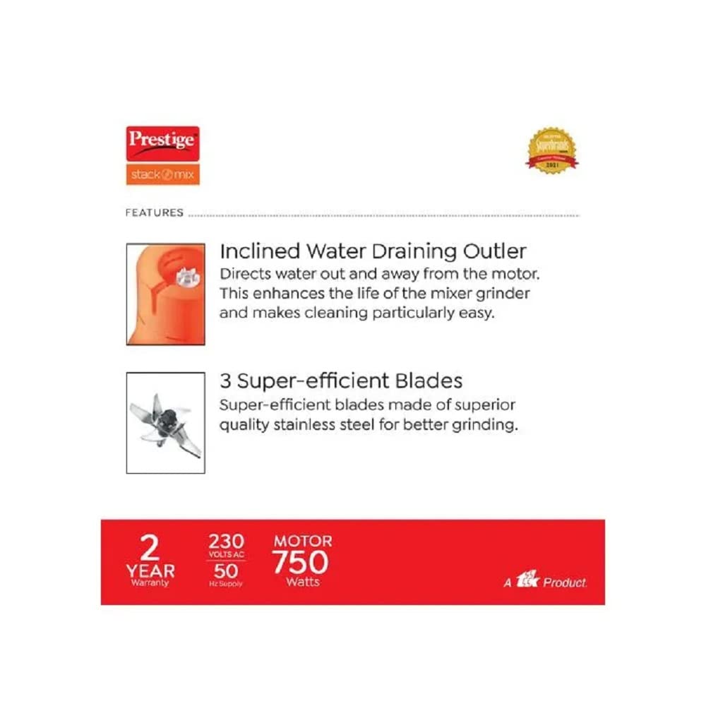 Prestige Stack-O-Mix 750 W Mixer Grinder with 3 Ss Jars