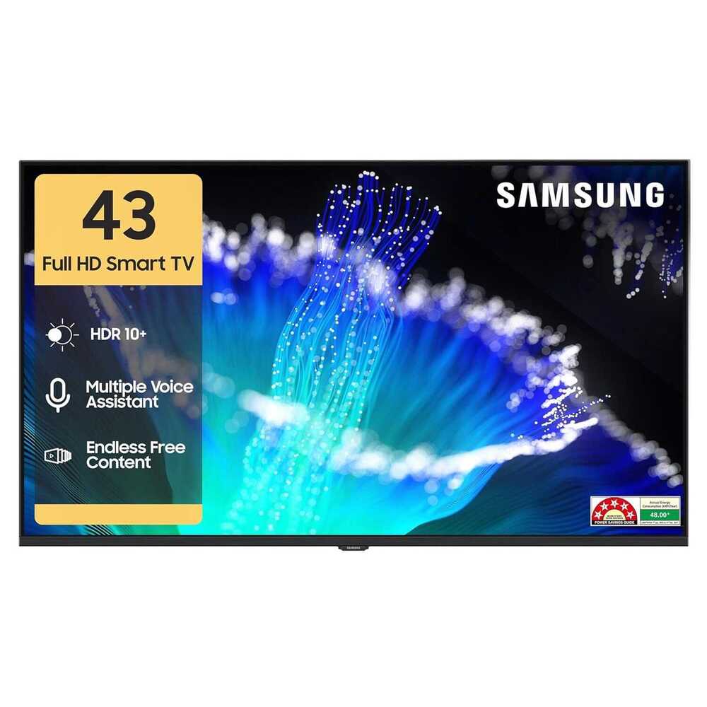 • Smart TV Features: Smart Remote with built-in Voice Assistance | Works with Alexa/Google Assistant external spekers| Endless Content with Samsung TV Plus (Access 100+ free TV Channels) | Web Browser | Quick Remote | Mobile-to-TV Mirroring | Sound Mirroring | Wireless TV On | Connect Apple Devices with AirPlay | Universal Guide | Energy Rating: 5 Star | Annual Energy Consumption: 48 kWh/Year