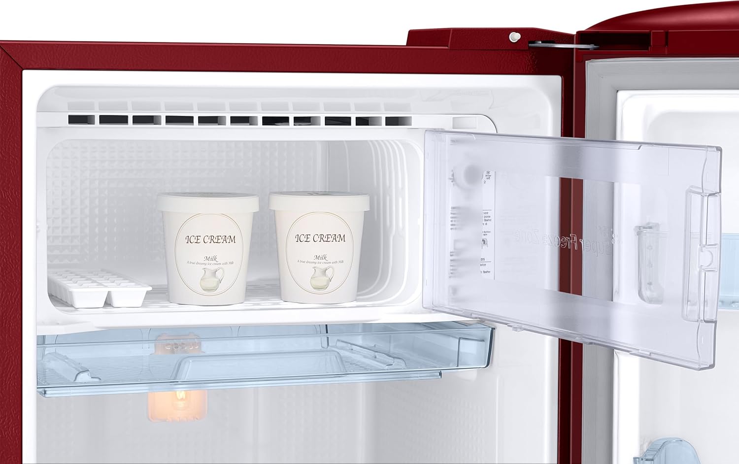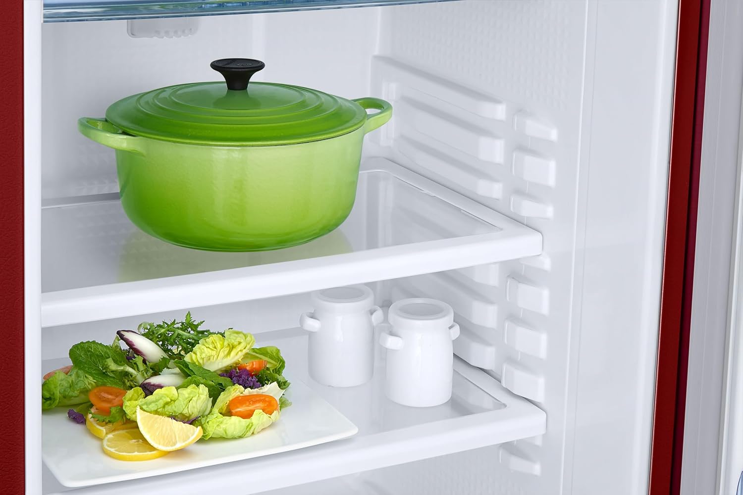- Direct Cool Refrigerator: Stylish Single Door Refrigerator with Modern Scarlet Red pattern. Enjoy powerful cooling that can last longer