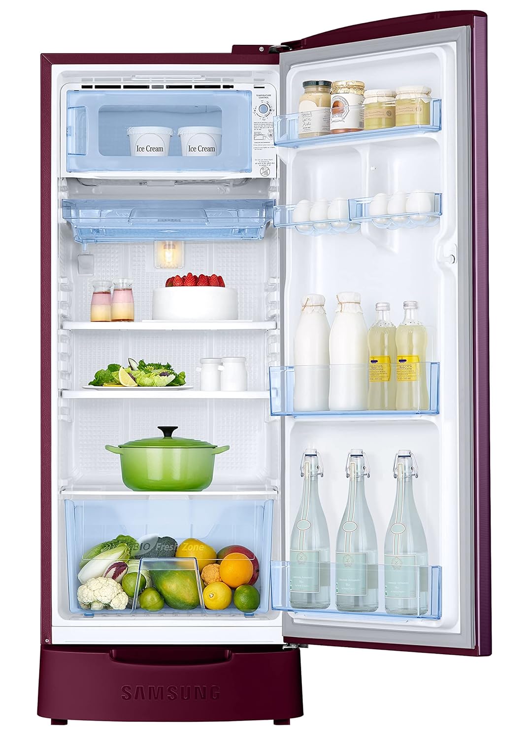 Samsung 183 L, 3 Star, Digital Inverter, Direct-Cool Single Door Refrigerator (RR20C1823CR/HL, Red, Camellia Purple, Base Stand Drawer)