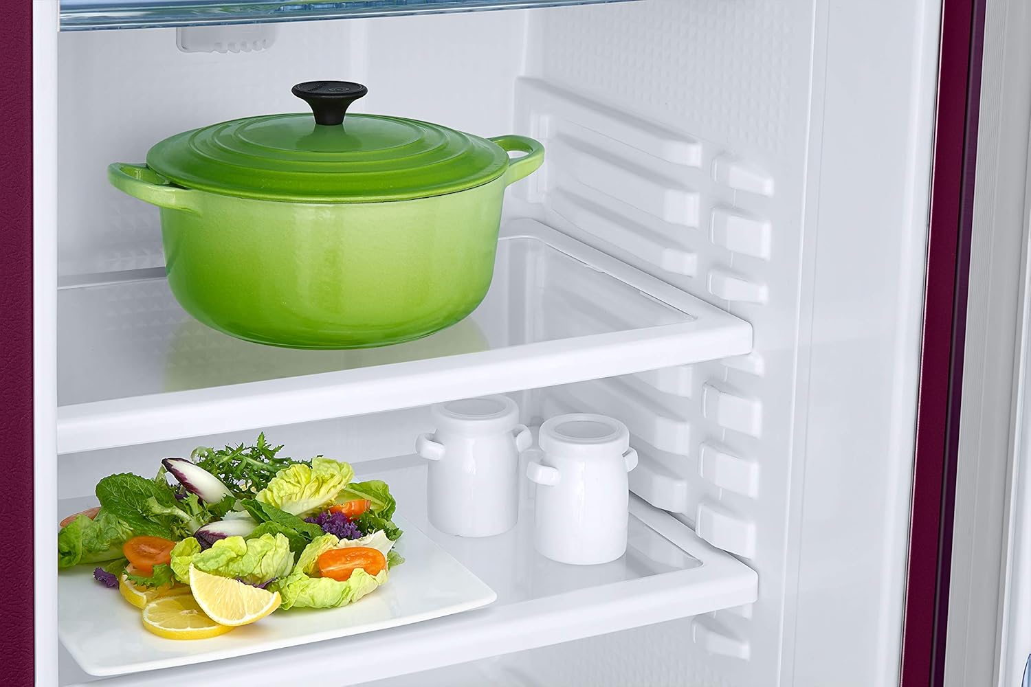 - Direct Cool Refrigerator: Stylish Single Door Refrigerator with Modern Camellia Purple pattern. Enjoy powerful cooling that can last longer