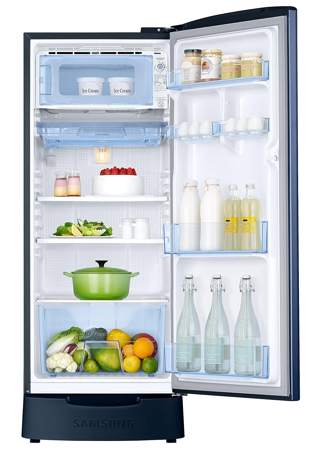 Samsung 183 L, 3 Star, Digital Inverter, Direct-Cool Single Door Refrigerator (RR20C1823CU/HL, Camellia Blue, Base Stand Drawer)