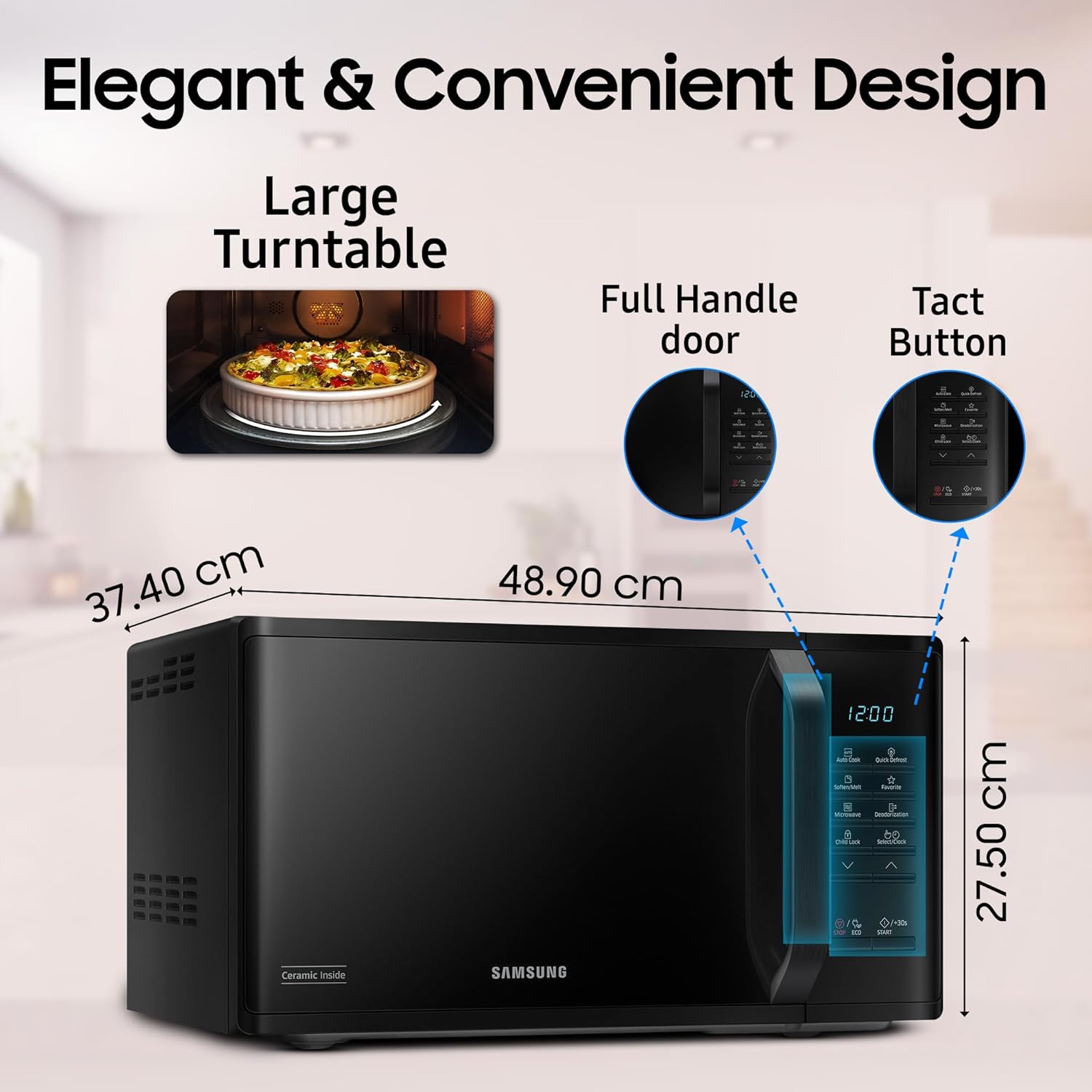 Samsung 23 L Solo Microwave Oven (MS23A3513AK/TL, Black, Auto Cook Programs, Child Safety Lock, Memory Feature, Deodorization, Ceramic Enamel Cavity with 10 year warranty)