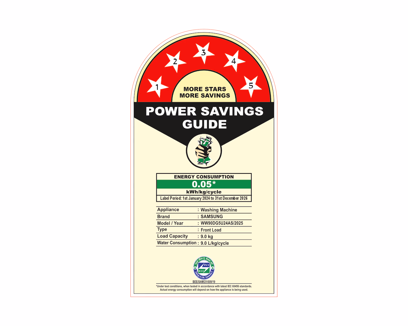 Samsung 9.0 kg Front Load Washing Machine with AI Ecobubble & Hygiene Steam, WW90DG5U24AS