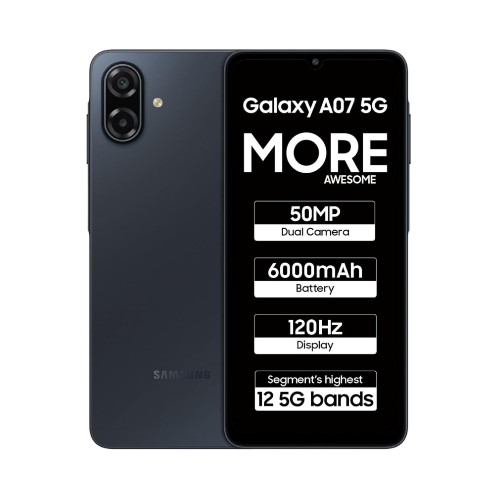 Samsung Galaxy A07 5G Smartphone (Black, 6GB RAM, 128GB Storage) | 120Hz Refresh Rate | Massive 6000mAh Battery | 50MP True Dual Camera | 6 Gen OS Upgrades | Knox Vault