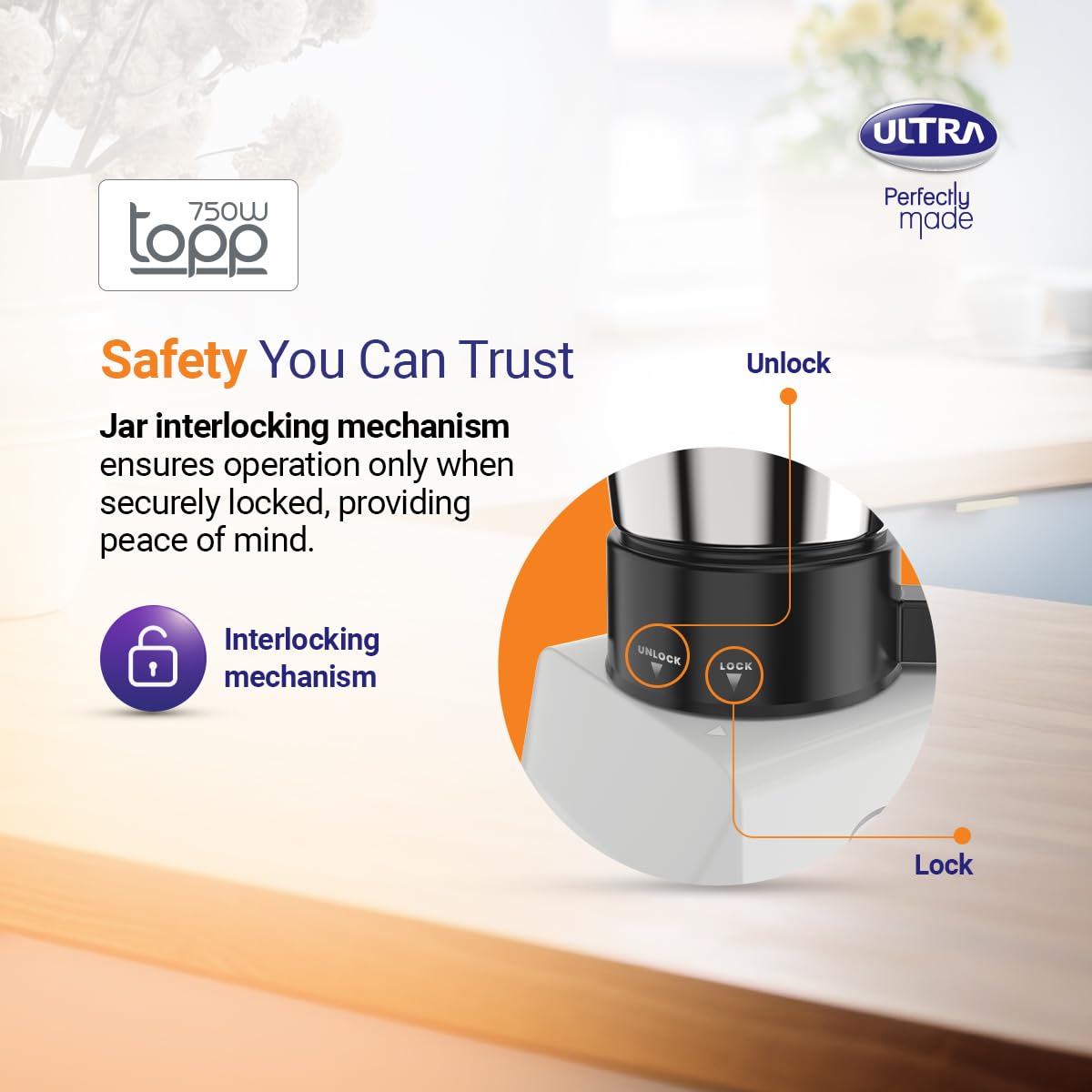 - JAR INTERLOCKING SAFETY-Safety is our priority. The mixer grinder will only function when the jar is properly locked to the body. This interlocking mechanism ensures that you can grind your ingredients safely without any risk of the jar dislodging during operation.