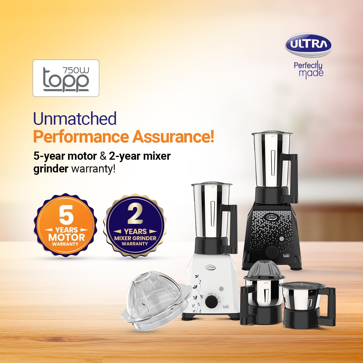 - 5 YEAR WARRANTY ON THE MOTOR- We stand by the quality of our motor with a 5-year warranty, valid in the country of purchase. This warranty ensures peace of mind, knowing that your investment is protected and that you can rely on our powerful motor for years to come. 2 YEAR WARRANTY ON THE MIXER GRINDER-In addition to the motor warranty, we offer a 2-year warranty on the mixer grinder itself, valid in the country of purchase. This comprehensive coverage reinforces our commitment to quality and