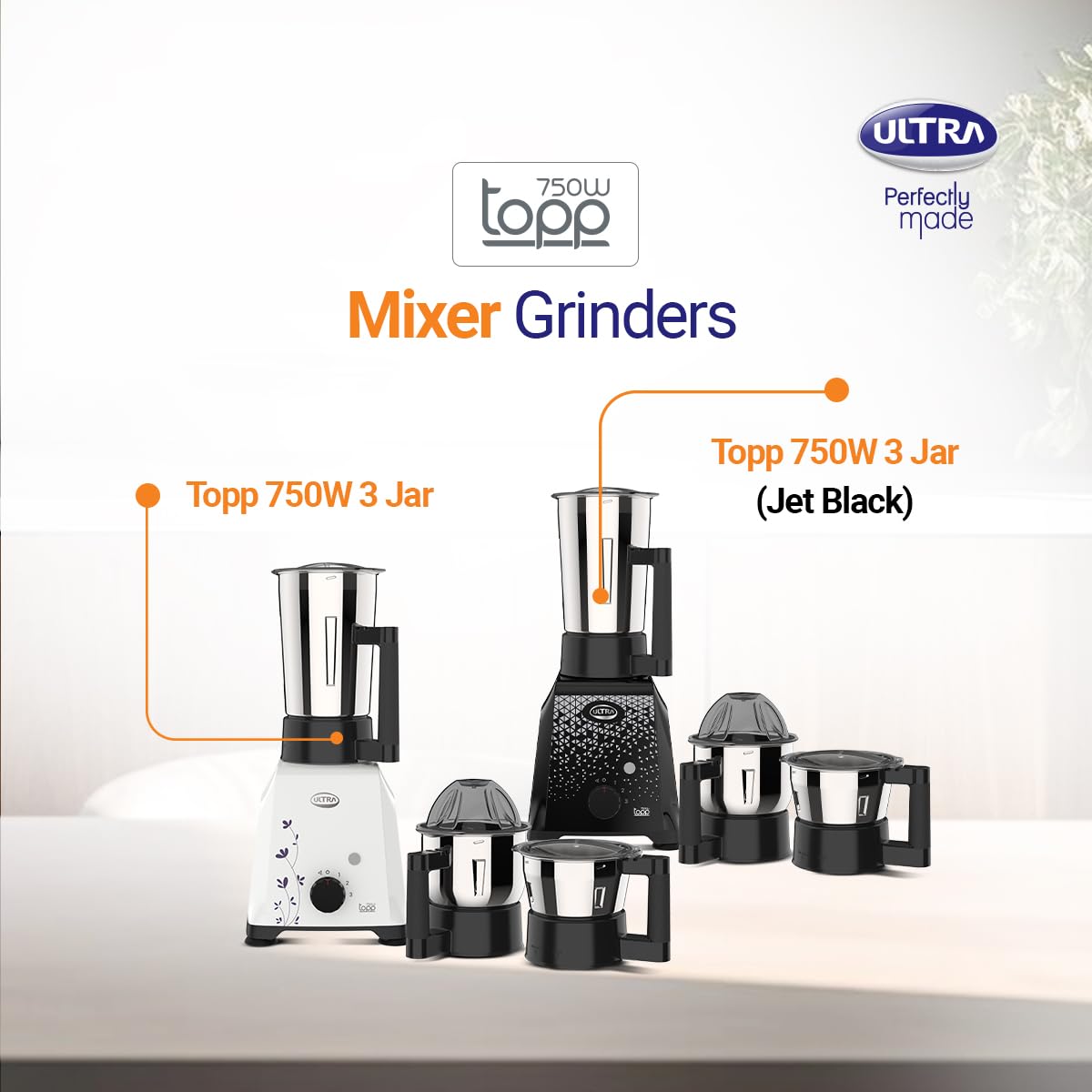 - 3 Jar -“Small Jar (0.5L): Ideal for chutneys, spice grinding, and herbs with sharp blades and spill-proof lid. Medium Jar (0.8L): Perfect for smoothies, purees, and batter preparation, featuring powerful blending capability. Large Jar (1.2L): Excellent for juices, large quantities, and heavy-duty grinding with high capacity and reinforced design.