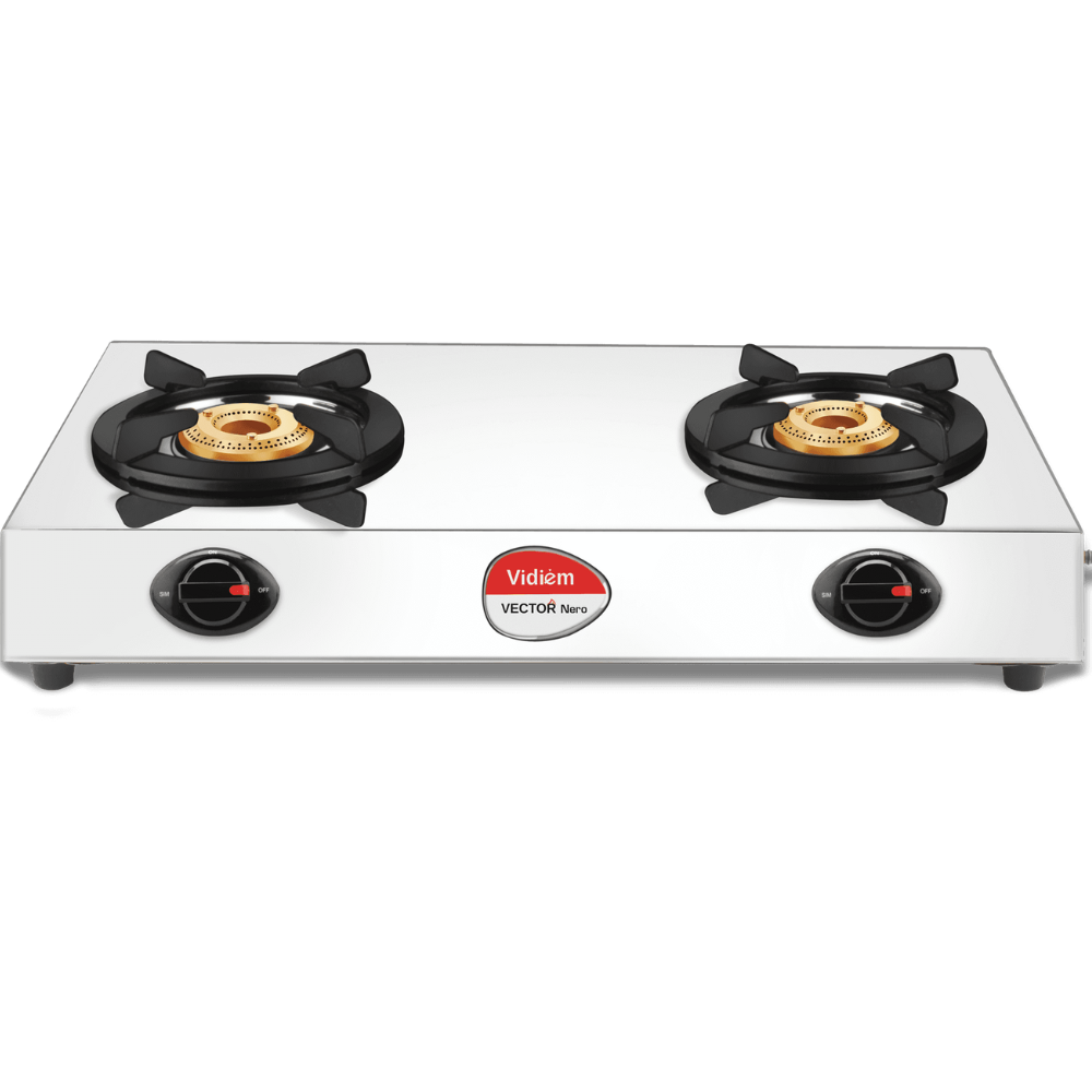 - Vector Nero 2 Burner Stainless Steel Gas Stove – Extra Large Cooking Surface & Widely Spaced Burners to accommodate Large Vessels with Medium & Small Brass Burners.