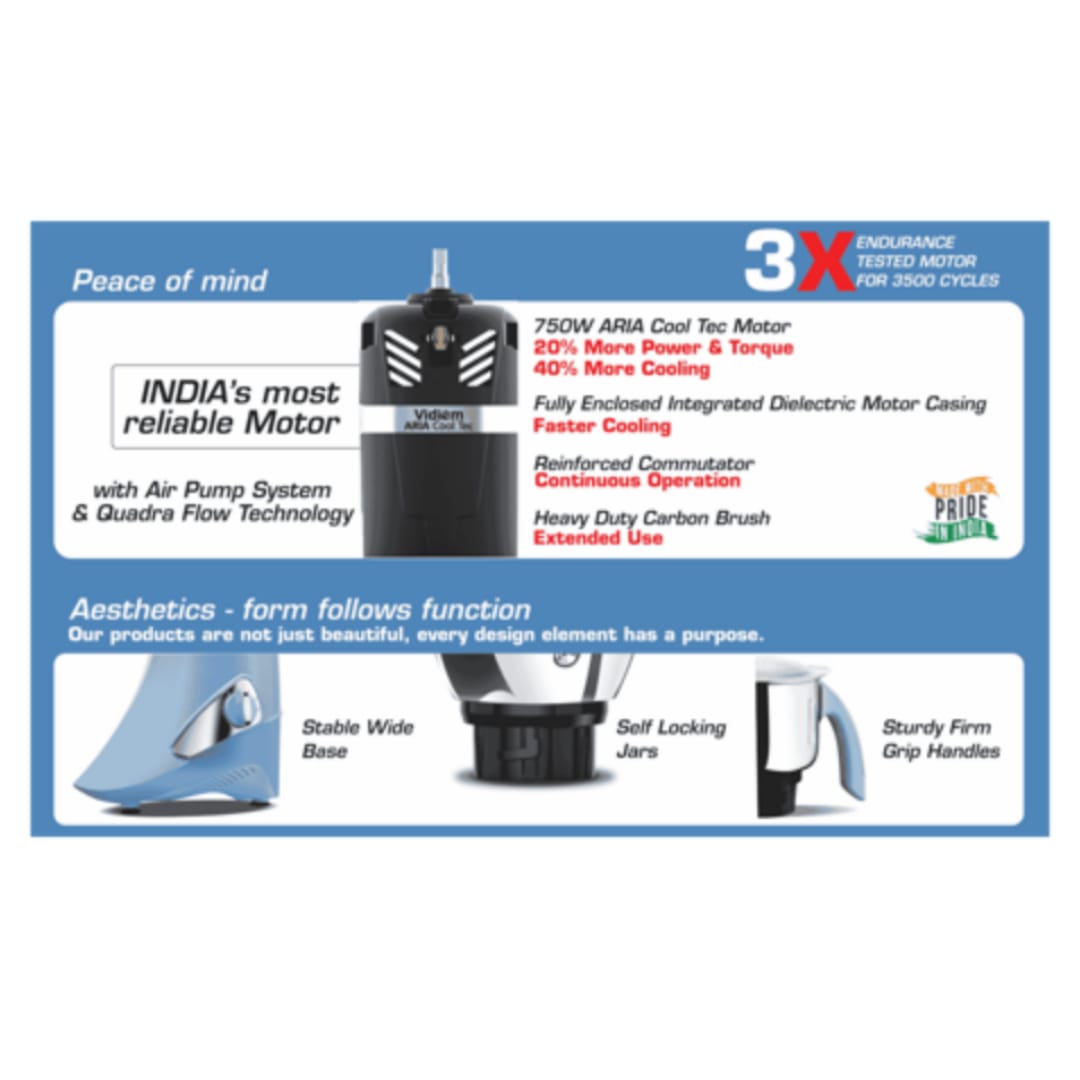 Vidiem Versa Pro 750W Mixer Grinder FG MG0241 ( 3 Jars,Dark Blue )
