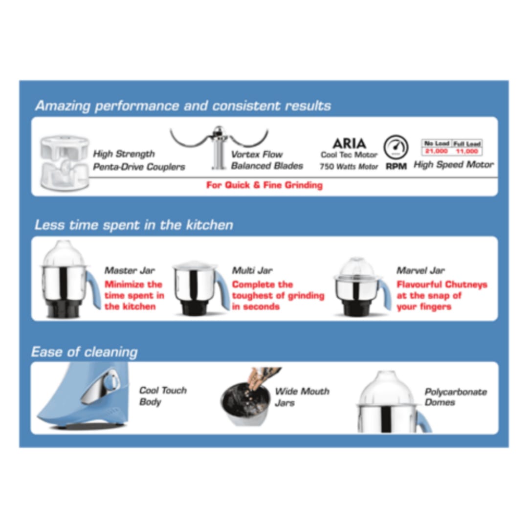 Preethi Peppy Mixer Grinder for Kitchen| 750 Watt Mixie