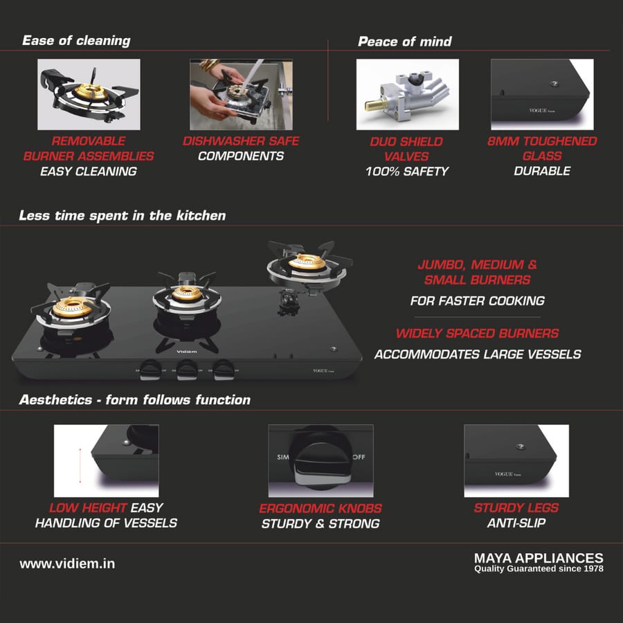 VIDIEM VOGUE VESTA 3BURNER GAS STOVE