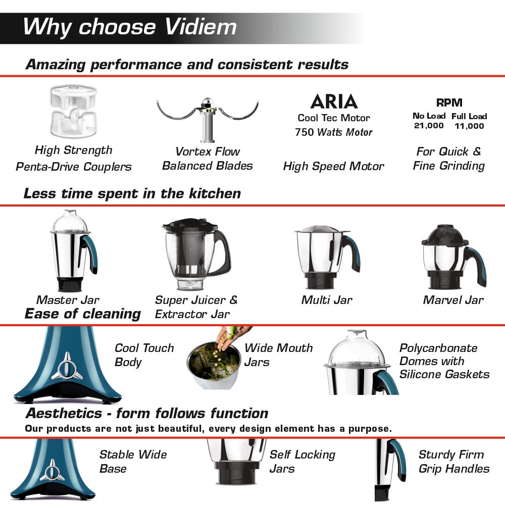 - Long Warranty & Trusted Indian Brand: Enjoy 5 Years Warranty on Motor and 2 Years on Product, backed by Vidiem’s trusted legacy of quality kitchen appliances since 1978. Designed and made in India for Indian households.